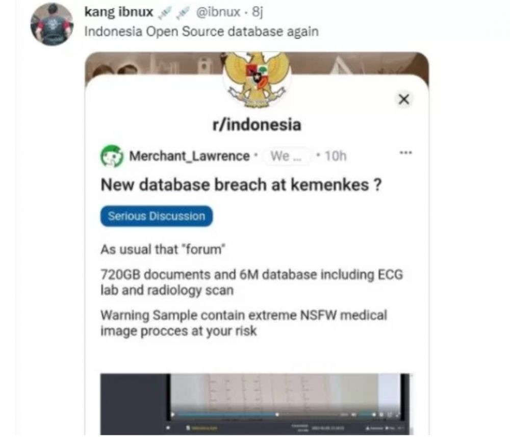 Pada situs gelap Reddit tersebut tertera tulisan ‘New database breach at Kemenkes?’. Dari tautan yang beredar di medsos, dokumen tersebut diklaim sebagai informasi medis pasien Indonesia.