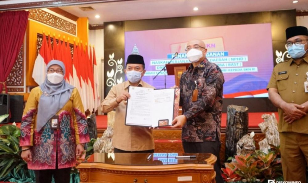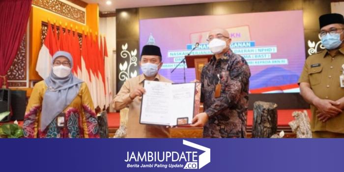 JAMBIUPDATE.CO, JAMBI - Gubernur Jambi, Al Haris dan Plt Kepala BKN RI Bima Haria Wibisana menandatangani naskah perjanjian hibah daerah (NPHD) dan berita acara serah terima (BAST) hibah tanah dari Pemprov Jambi ke BKN RI.