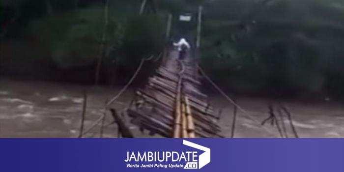 Bagaimana tidak, pasalnya mereka berjalan di atas jembatan rusak dan terlihat juga sungai di bawahnya berarus cukup deras.