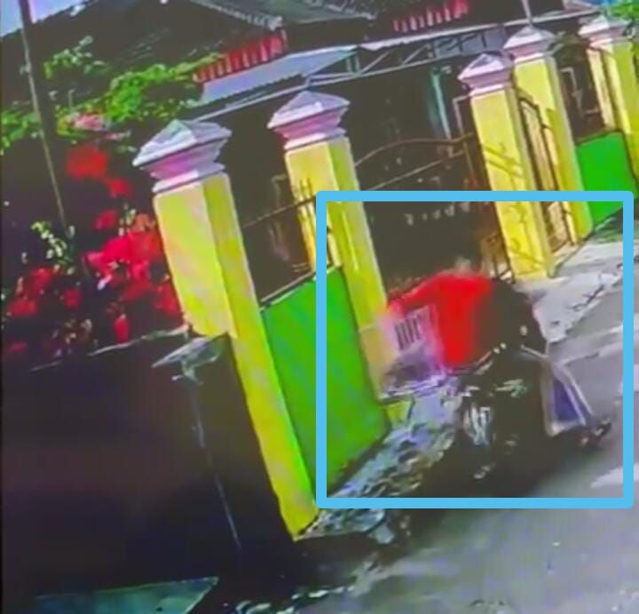 Di video rekaman CCTV terlihat 2 orang yang diduga masih remaja berhenti tepat di depan rumah korban. Salah satu pelaku yang menggunakan kaos berwarna merah, langsung turun dan masuk ke dalam pekarangan rumah korban.