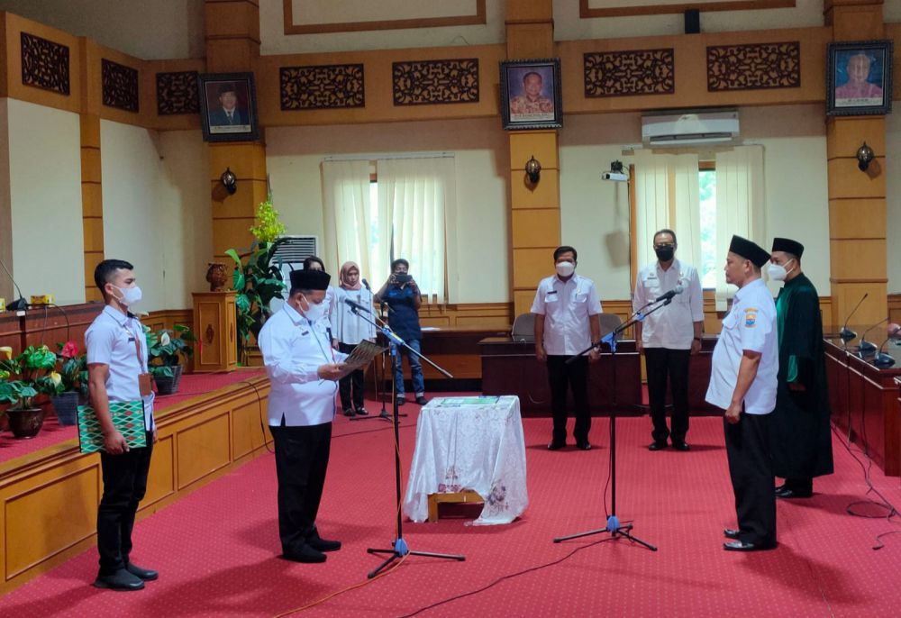 Apani membacakan naskah pengukuhan dan diikuti Pahrin Wirnadian.