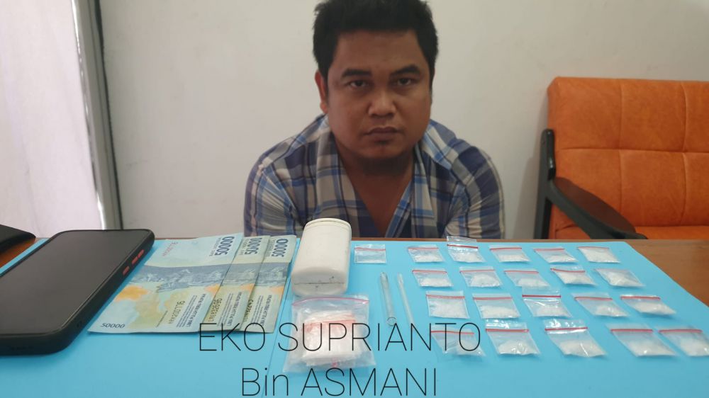 "Hasil dari penggeledahan itu, ditemukan di kantong sebelah kanan di dalam kotak plastik warna putih berisikan narkotika jenis sabu sbnyak 21 paket bungkus kecil dan 1 pack plastik klip bening," ungkapnya.