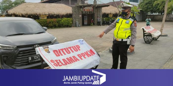 "Kegiatan hari ini ditujukan untuk mengurangi kerumunan masyarakat di sepanjang jalan Somantri Brojonegoro, Personel Satlantas Polresta Jambi telah memasang di 20 Titik bangku," katanya