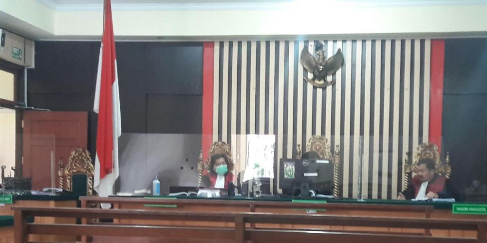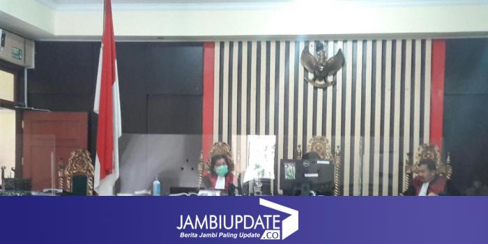 Sidang yang dimulai sekira pukul 12.00 WIB, bertempat di Ruang Sidang Kartika Tipikor Pengadilan Jambi, dipimpin oleh Hakim Ketua Carpioner dan didampingi 2 orang hakim anggota dan diikuti oleh Kuasa Hukum Terdakwa Duen Sasberi.