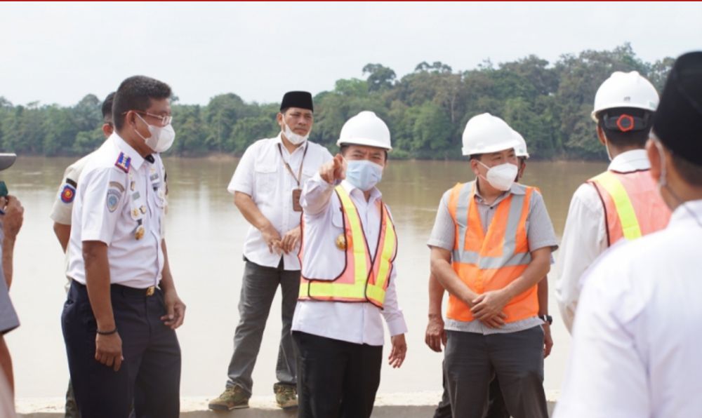 JAMBIUPDATE.CO, MUARABULIAN – Usai menghadiri Sedekah Payo bersama masyarakat Desa Sarang Burung Simpang Limo Kecamatan Jambi Luar Kota Kabupaten Muaro Jambi, Gubernur Jambi, Dr.H.Al Haris,S.Sos.,M.H., melakukan peninjauan ke Pelabuhan Desa Tenam Kecamatan Muara Bulian Kabupaten Batanghari, Rabu (23/02/2022).Al Haris secara langsung meninjau program pengerukan sungai di Desa Tenam sebagai salah satu upaya dalam mengatasi permasalahan terkait angkutan batu bara yang selama ini terjadi di Provinsi Jambi.