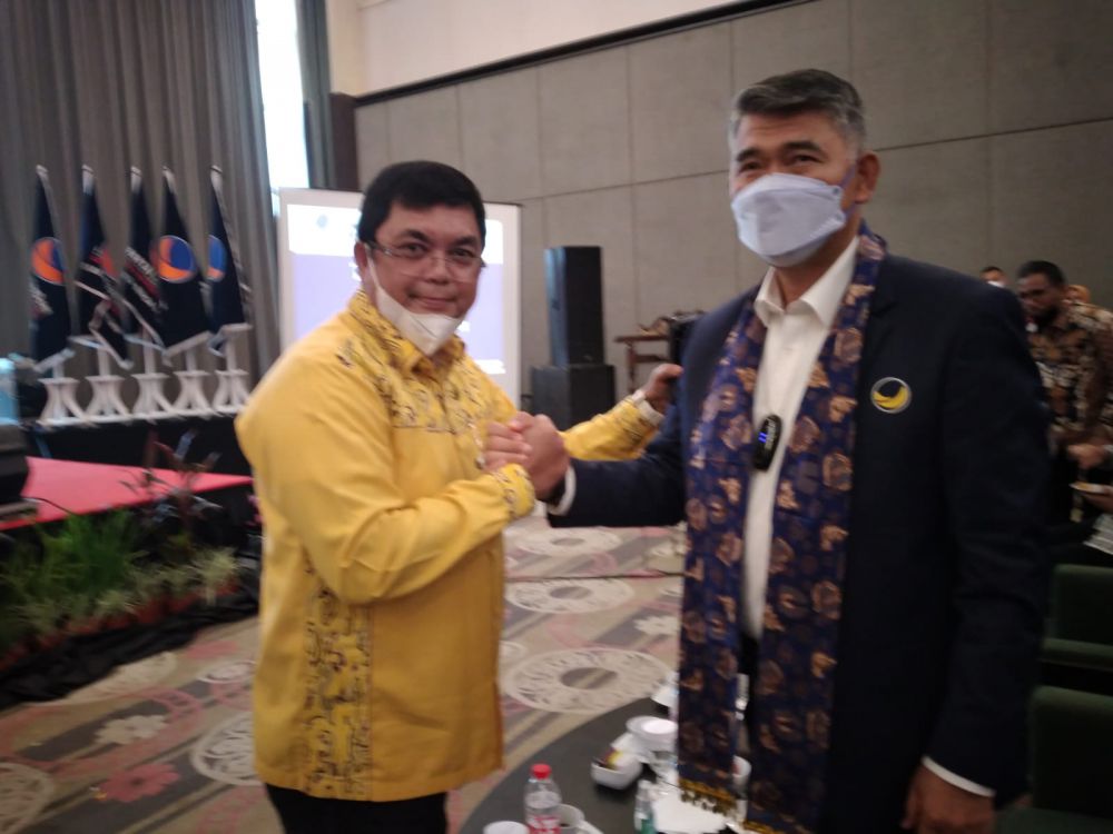 Ivan sendiri terlihat menyalami Ketua DPW Nasdem Provinsi Jambi Syarif Fasha. "Ini yunior saya (Ivan,red) saat menyebut Ivan Wirata," katanya.