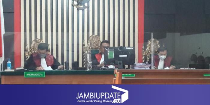 Sidang dipimpin oleh Hakim Ketua Yandri Roni, didampingi dua orang Hakim Anggota Yofsitian dan Bernard Panjaitan, tampak hadir juga dari unsur Jaksa Penuntut Umum (JPU) Kejari Tanjab Timur Ali, serta Kuasa Hukum terdakwa, bertempat di ruang Kartika Pengadilan Negeri Jambi.