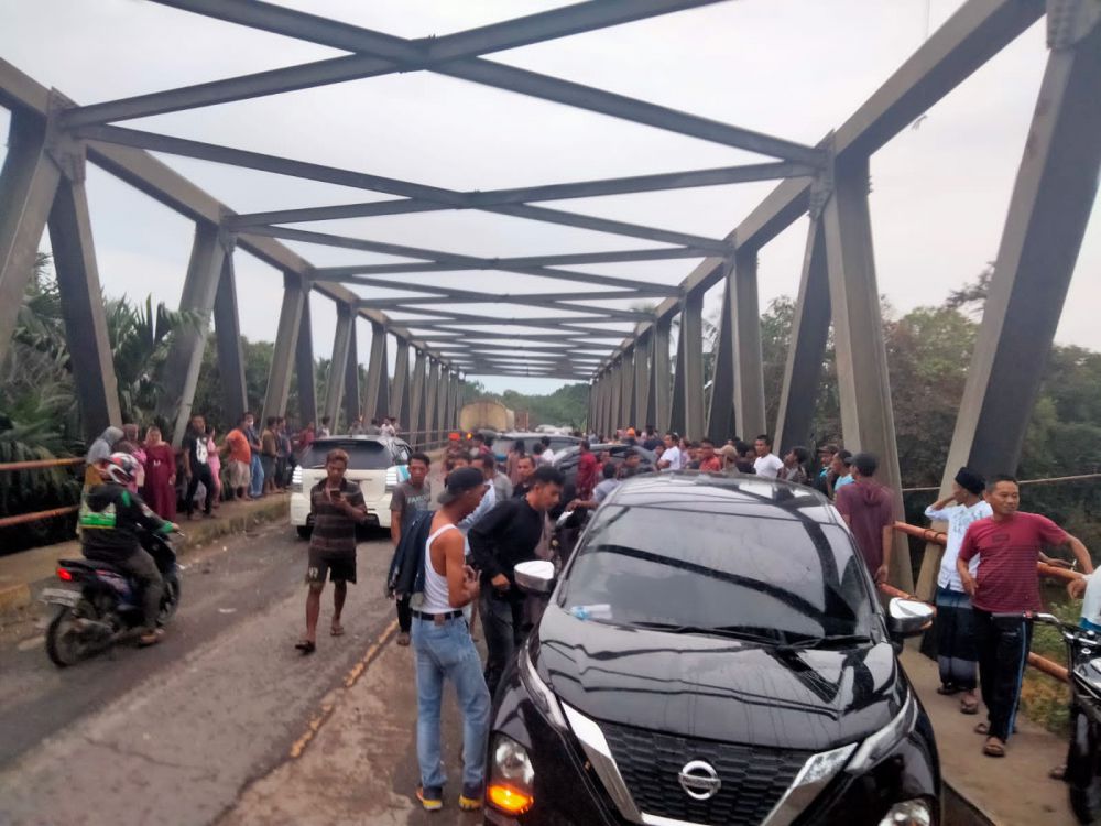 dari informasi yang dihimpun kejadian sempat membuat arus lalu lintas di jalan lintas Timur baik menuju Jambi atau pun menuju Riau mengalami kemacetan.(Sun)
