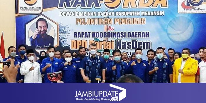 JAMBIUPDATE.CO, MERANGIN-Ketua DPW Partai NasDem Provinsi Jambi, DR H Syarif Fasha, ME pada Sabtu malam (19/03/2023) melantik pengurus DPD Partai Nasdem Merangin di bawah komando Muhammad Yani di Hotel Cantika Bangko.