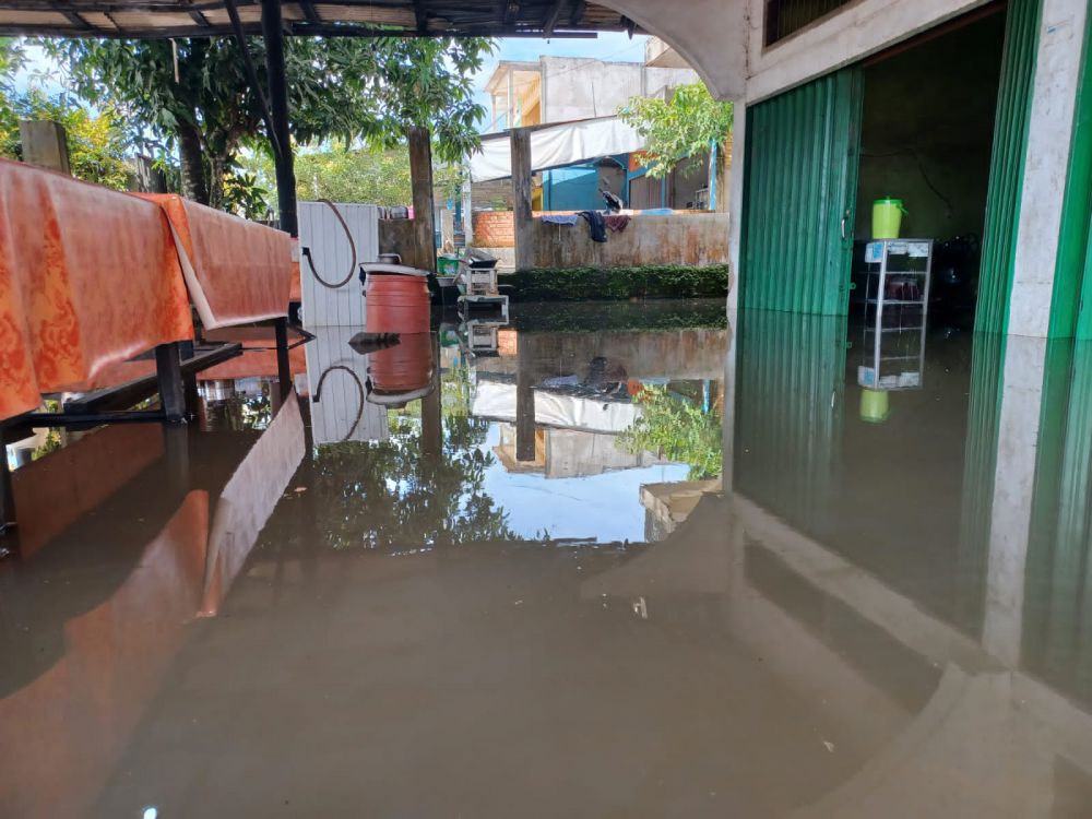 Banjir yang melanda pemukiman warga tersebut bahkan hingga sedada orang dewasa. Banjir tersebut disebabkan tidak berfungsinya aliran air (drainase).