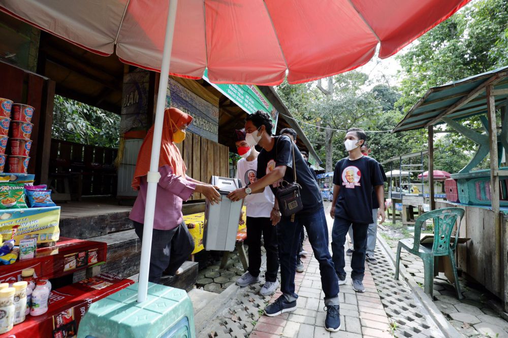 Selain menggelar deklarasi, Ganjar Milenial Jambi gowes mengelilingi Candi Muaro Jambi. Mahasiswa dan milenial juga membagikan sembako door to door dan alat kebersihan berupa tong sampah di sekitar Pondok Kopi Dusun, di kawasan candi. (ist)