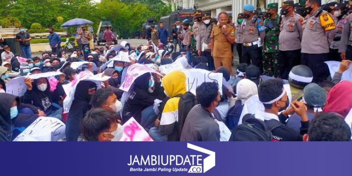 JAMBIUPDATE.CO, JAMBI-Kepala Sekolah SMKN 3 Edri Penta  memperlihatkan ketegasannya diwawancarai paska demonstrasi siswa SMKN 3 di gedung DPRD Kota Jambi Selasa siang tadi (29/3).