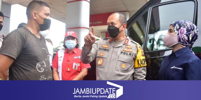 Nicke meninjau dua SPBU di Kota Jambi untuk melihat antrean yang terjadi, khususnya di SPBU di jalan lingkar Kota Jambi. Yakni SPBU Tanjung Lumut dan SPBU Talang Bakung Kota Jambi.