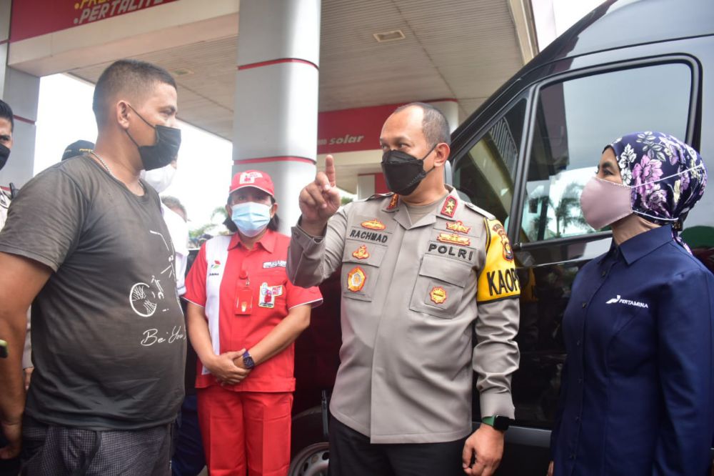 "Harus di tambah ini, supaya tidak antrean panjang," kata dia kepada petugas SPBU di Talang Bakung.