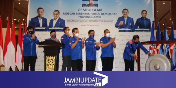 JAMBIUPDATE.CO, JAMBI - DPD Partai Demokrat Provinsi Jambi melaksanakan Musyawarah Cabang (Muscab) IV di Hotel Aston, Jumat (8/4/2022).