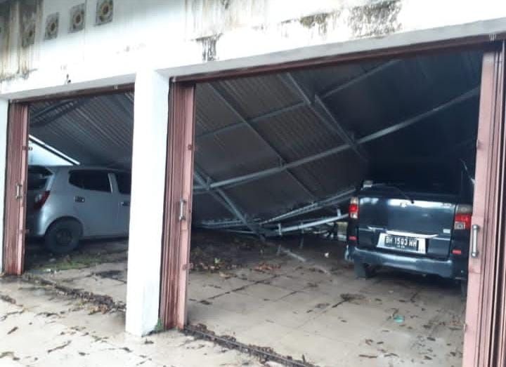 "Ada beberapa mobil diparkiran yang tidak tertimpa karena beberapa atap parkiran tertiup angin," ujar salah satu penjaga Rumah Dinas Bupati Merangin. (wwn)