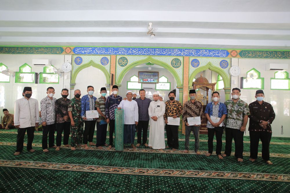Pada kesempatan ini, Bupati beserta rombongan menyerahkan bantuan kepada pengurus Masjid Al-Hidayah dan menyerahkan zakat serta bantuan konsumtif dari Baznas Tanjabtim untuk PHTT yang ada Kecamatan Nipah Panjang.