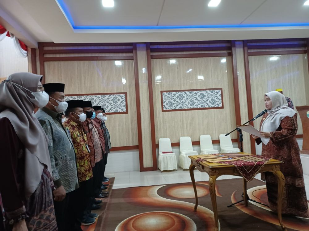 JAMBIUPDATE.CO, MUARO JAMBI- Bupati Muarojambi, Masnah Busro melakukan pelantikan hasil job fit yang telah dilaksanakan beberapa waktu lalu, Kamis (14/4).