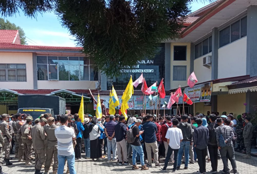 JAMBIUPDATE.CO, KERINCI - Puluhan massa dari mahasiswa geruduk Kantor DPRD Kerinci, Jumat (22/4/2022). Mahasiswa dari HMI, PMII, dan IMM cabang Kerinci mendatangi kantor dewan untuk menyampaikan berbagai aspirasi.