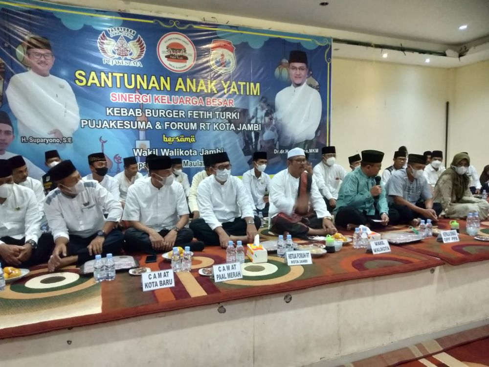 JAMBIUPDATE.CO, JAMBI-Paguyuban Pujakesuma Provinsi Jambi dan Forum RT Kota Jambi, bersinergi dengan Kebab Burger Fetih Turki yang juga di bawah binaan DPP Pujakesuma, memberikan santunan kepada anak yatim di Kota Jambi.