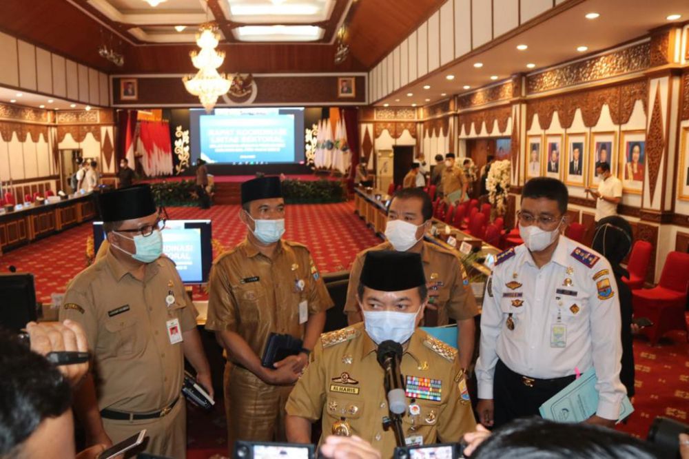 JAMBIUPDATE.CO, JAMBI - Gubernur Jambi, Dr.H.Al Haris, S.Sos.,M.H., secara langsung membuka Rapat Koordinasi Forum Koordinasi Pimpinan Daerah (Forkopimda) Provinsi Jambi dalam rangka Menghadapi Hari Raya Idul Fitri 1443 H Tahun 2022, bertempat di Auditorium Rumah Dinas Gubernur Jambi, Senin (25/4).