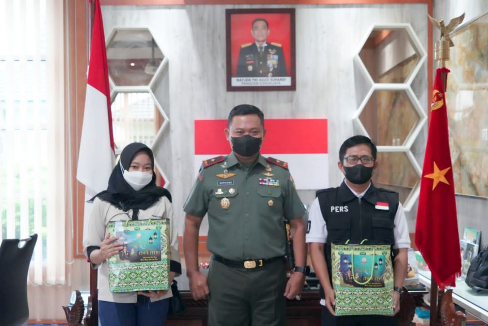 Paket bingkisan lebaran tersebut diserahkan langsung oleh Danrem 042/Gapu Brigjen TNI Supriono secara simbolis kepada wartawan di ruang kerja Danrem 042/Gapu, Rabu (27/4) pukul 08.30.