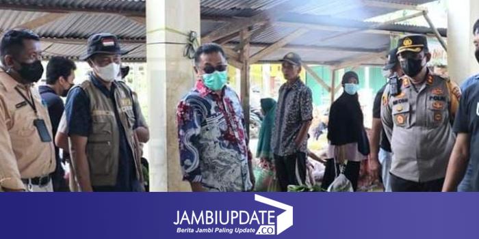 JAMBIUPDATE.CO, MUARASABAK - Sekda Tanjabtim, Sapril bersama Kapolres Tanjabtim, AKBP Andi Muh. Ichsan memantau harga sembako di pasar rakyat Kelurahan Talang Babat, Kecamatan Muara Sabak Barat, Kamis (28/4) pagi.