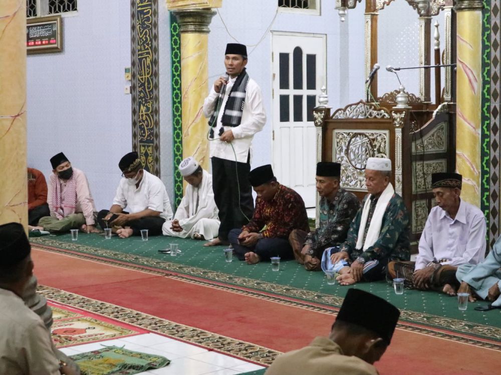 Setelah dialog dan buka puasa bersama para kepala desa dan tokoh masyakarakat, Edi Purwanto berpindah ke Masjid Jami’ Nurul Huda untuk melakukan sholat Maghrib, Isya dan Tarawih berjamaah.