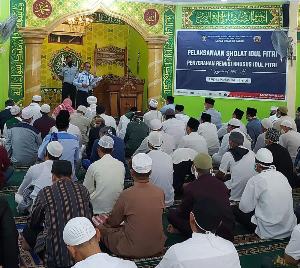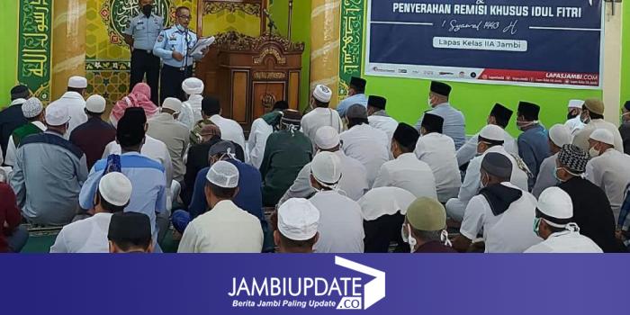 "Bertempat di Masjid At Taubah, Lapas Jambi, melaksanakan salat Idul Fitri dan penyerahan remisi khusus Hari Raya Idul Fitri tahun 2022 kepada warga binaan," tutupnya.(rhp)