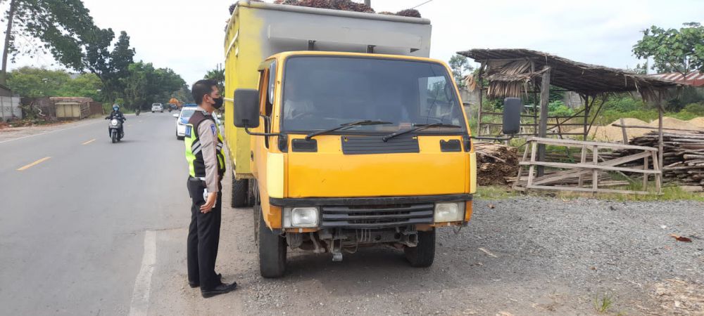 JAMBIUPDATE.CO, JAMBI- Sebanyak 4 unit truk non esensial yang melintas di Kawasan Jalan Baru, Kecamatan Jambi Timur, Kota Jambi, ditilang Personel Satuan Lalu Lintas Polresta Jambi, pada Sabtu (7/5).