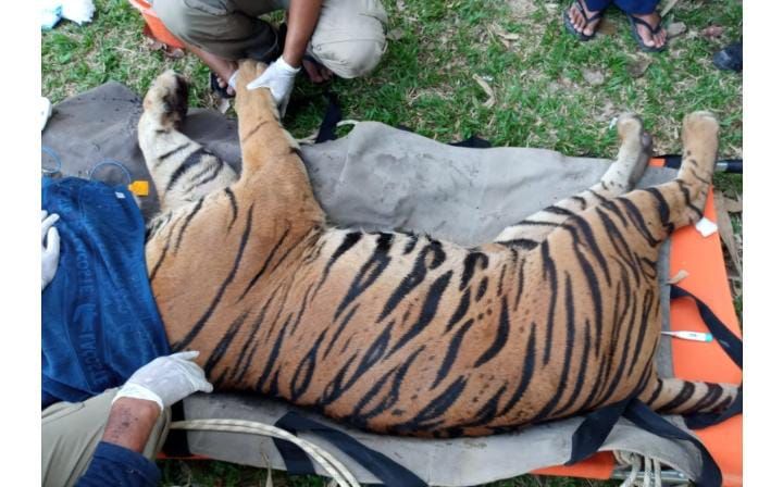 "Pada 22 April 2022 lalu, kita telah melakukan pemeriksaan fisik yang diketahui harimau itu memiliki berat badan 110 kg, panjang keseluruhan 217 cm , panjang taring atas 6,2 cm serta panjang taring bawah 3,5 cm," sampainya.