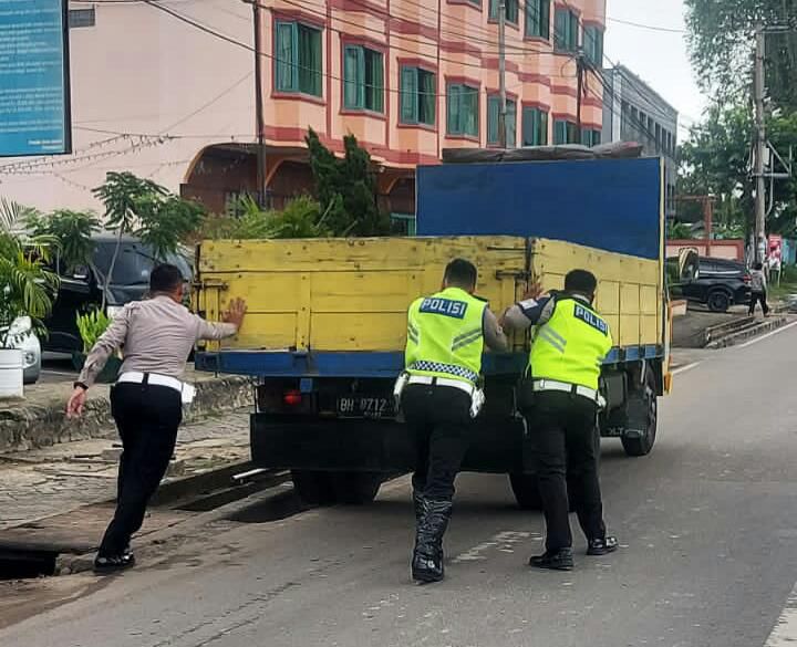 JAMBIUPDATE.CO, JAMBI- Satu unit truk mengalami kerusakan ditengah Kota Jambi, tepatnya di Kawasan Tugu Adipura Jl Abdurrahman Saleh, Kecamatan Jambi Selatan. Menyikapi hal tersebut Satuan Lalu Lintas Kota Jambi melakukan evakuasi untuk menghindari kemacetan.