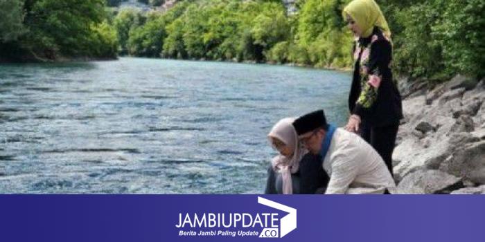 Ridwan Kamil bersama keluarga di Sungai Aare Swiss. (Net)