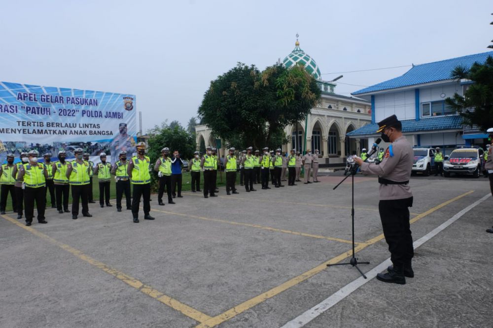 Apel diikuti Karo Ops Polda Jambi, Kombes Pol Feri Handoko, Dirlantas Polda Jambi, Kombes Pol.Dhafi dan personel Ditlantas yang terlibat surat perintah Operasi Patuh Siginjai 2022.