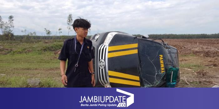 JAMBIUPDATE.CO, KUALATUNGKAL - Mobil Patwal milik Satuan Polisi Pamong Praja (Satpol PP) Pemkab Tanjabbarat, terbalik di dusun delima, Senin (20/6) pagi.
