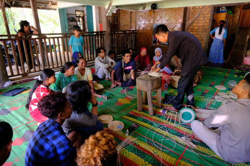 Dalam pelatihan yang dipandu oleh Pengrajin dan pemilih usaha kerajinan rotan Fajar Adenin ini, Orang Rimba dilatih untuk membuat berbagai produk kerajinan, seperti piring, keranjang, dan vas bunga. Fajar menjelaskan dari sebatang rotan semua komponennya bisa dimanfaatkan untuk kerajinan. “Jika menjual satu batang rotan, Orang Rimba hanya bisa mendapat uang tidak sampai lima ribu rupiah. Dengan menganyam 1 batang rotan tersebut, bisa mendapatkan uang 10 kali lipat,”kata Fajar.
