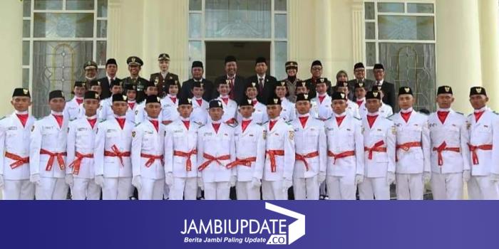 JAMBIUPDATE.CO, MUARASABAK - Pasukan Paskibraka Kabupaten Tanjabtim angkatan tahun 2022, dikukuhkan (16/8/22), di ruang pola Rumah Dinas Bupati Tanjabtim.