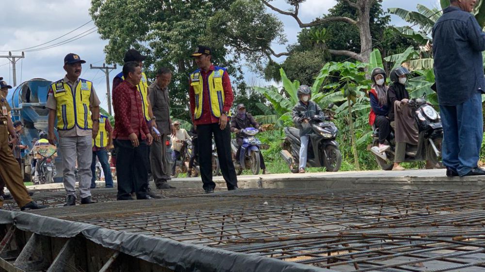 JAMBIUPDATE.CO, JAMBI - Ketua DPRD Provinsi Jambi, Edi Purwanto bersama dengan anggota DPRD Provinsi Jambi, Nur Tri Kadarini, Usman Halik, anggota DPRD Kabupaten Muaro Jambi, melakukan tinjauan pembangunan jalan di wilayah Kumpeh, Selasa (23/8).