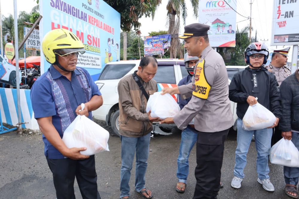 JAMBIUPDATE.CO, KERINCI - Polres Kerinci menyalurkan Bantuan Sosial POLRI kepada masyarakat Sungai Penuh yang terdampak Penyesuaian harga BBM Bersubsidi, Rabu (07/09/2022).