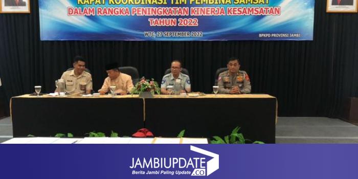 JAMBIUPDATE.CO, JAMBI - Badan Pengelolaan Keuangan dan Pajak Daerah (BPK-PD) Provinsi Jambi, melaksanakan Rapat koordinasi (Rakor) Tim Pembina Samsat Semester I tahun 2022, dalam rangka peningkatan kinerja Kesamsatan tahun 2022. Kegiatan dilaksanakan di Wiltop Hotel Jambi. Kepala BPK-PD Provinsi Jambi, Agus Pirngadi, S.Sos mengatakan kegiatan ini bertujuan untuk sinergi dan optimlisasi pajak kendaraan bermotor (PKB) dan bea balik nama kendaraan bermotor (BBN-KB), melalui Undang-Undang Nomor 1 tahun 2022, tentang Hubungan keuangan antara Pemerintah Pusat dan Pemerintah Daerah.