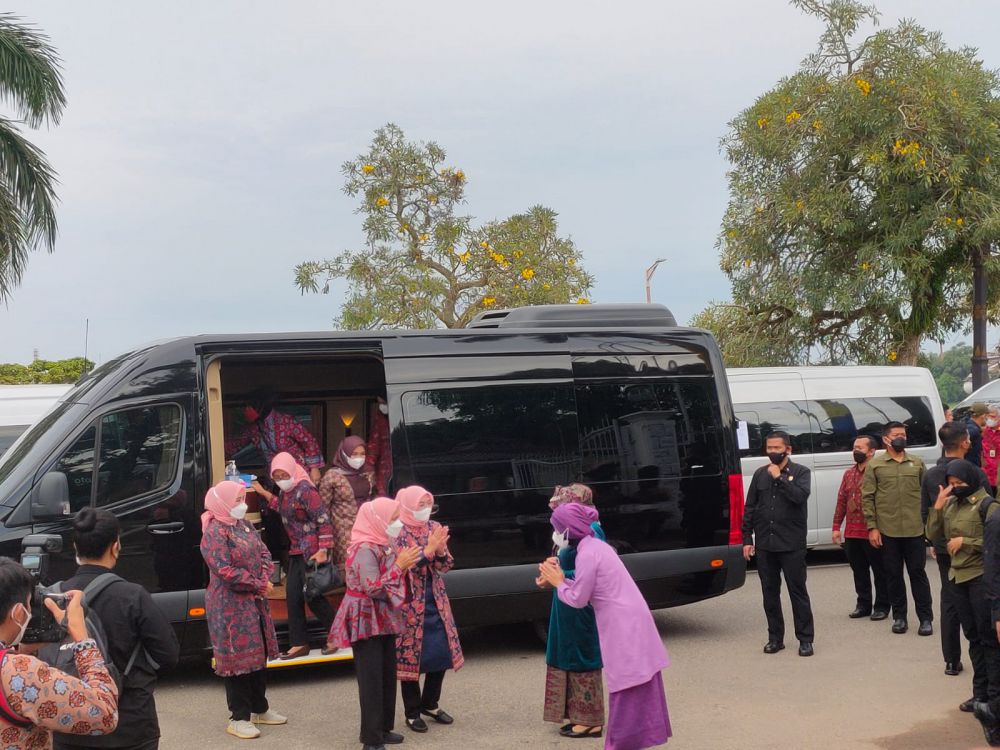 JAMBIUPDATE.CO, JAMBI - Istri Presiden RI Joko Widodo (Jokowi), Iriana Joko Widodo menyambangi Provinsi Jambi pada Kamis (20/10). Dalam kunjungannya ini ia didampingi ibu Wury Ma'ruf Amin.