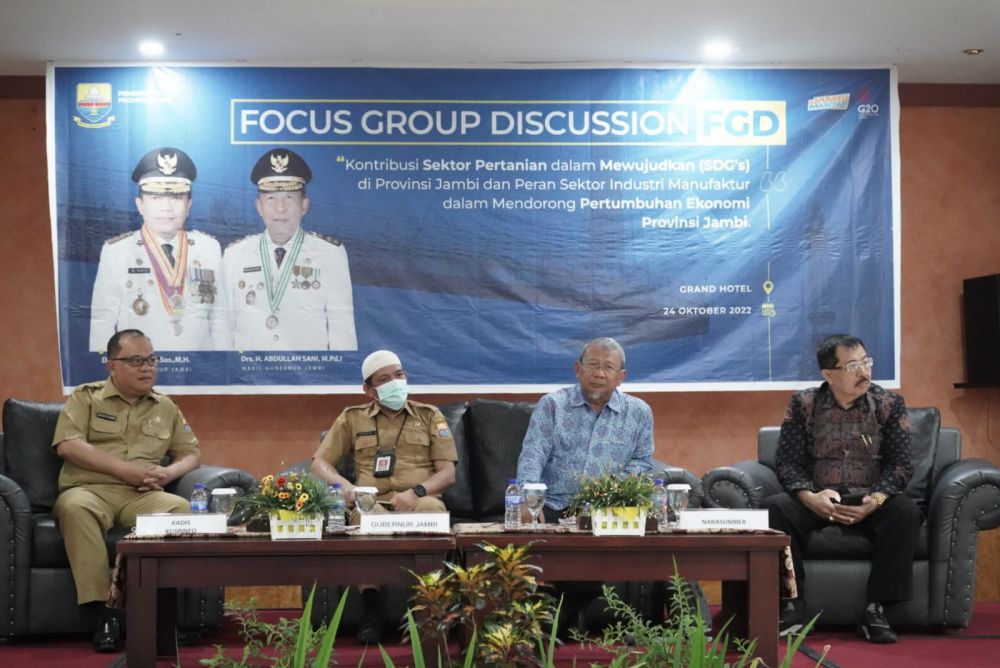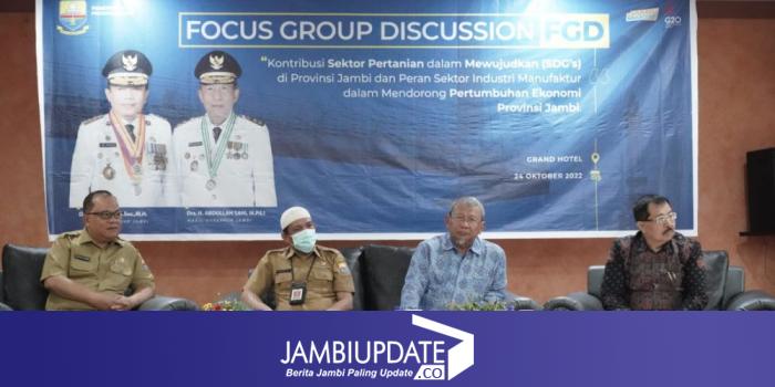 JAMBIUPDATE.CO, JAMBI - Gubernur Jambi, Dr. H. Al Haris, S.Sos, M.H diwakili oleh Staf Ahli Gubernur Bidang Politik, Hukum, dan Pemerintahan, Dr. Donny Iskandar, S.Sos, M.T membuka acara Focus Group Discussion "Kontribusi Sektor Pertanian dalam Mewujudkan (SDG's) di Provinsi Jambi dan Peran Sektor Industri Manufaktur dalam Mendorong Pertumbuhan Ekonomi Provinsi Jambi" pada Senin (24/10) bertempat di Grand Hotel Jambi.