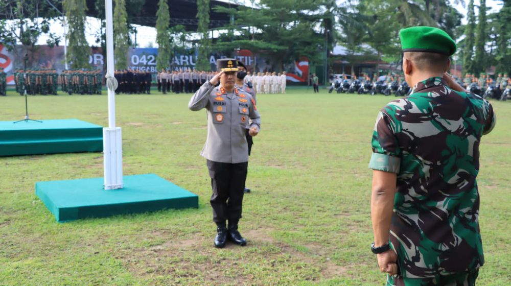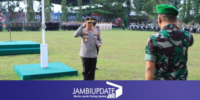 JAMBIUPDATE.CI, JAMBI - Kapolda Jambi Irjen Pol Rusdi Hartono pimpin apel gabungan personel TNI-Polri di lapangan Makorem 042/Gapu Jambi pada Senin, (24/10).