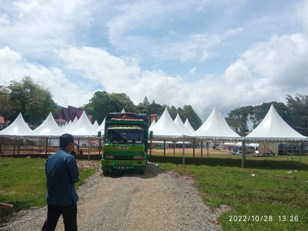 Pantauan di lokasi arema MTQ terlihat pekerja sedang sibuk memasang panggung utama serta perlengkapan lainnya.