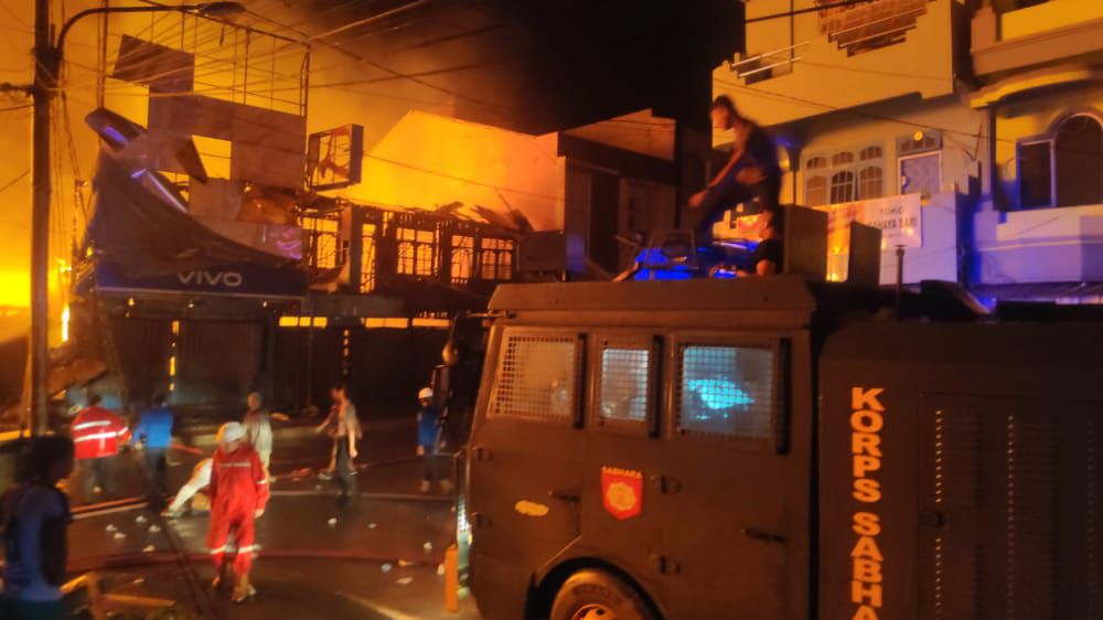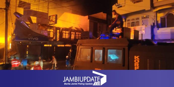 Belasan ruko di Jl Jenderal Ahmad Yani dan rumah warga di Lorong Dahlia RT. 01 Kelurahan Tungkal IV Kota, Kecamatan Tungkal Ilir, Tanjab Barat, ludes dilalap api.