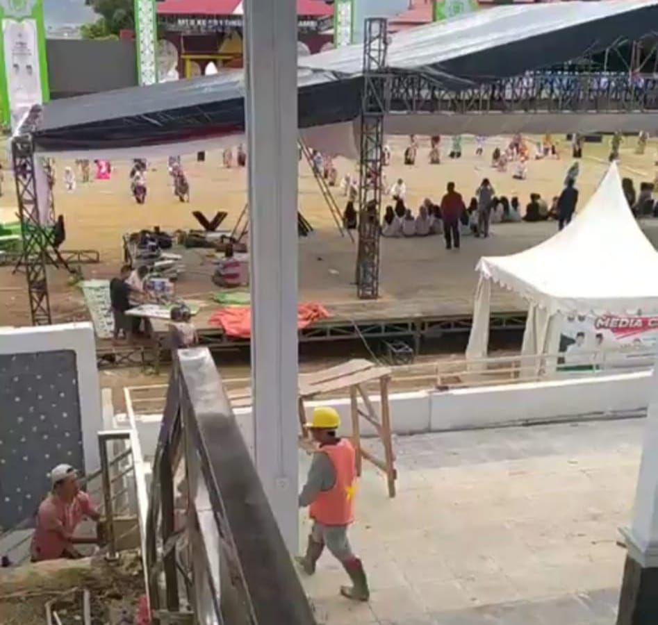 "Seharusnya, satu minggu sebelum pembukaan untuk panggung utama, tenda dan lampu sudah siap semua, jadi tinggal menyiapkan yang lainya lagi," ujar Alpi