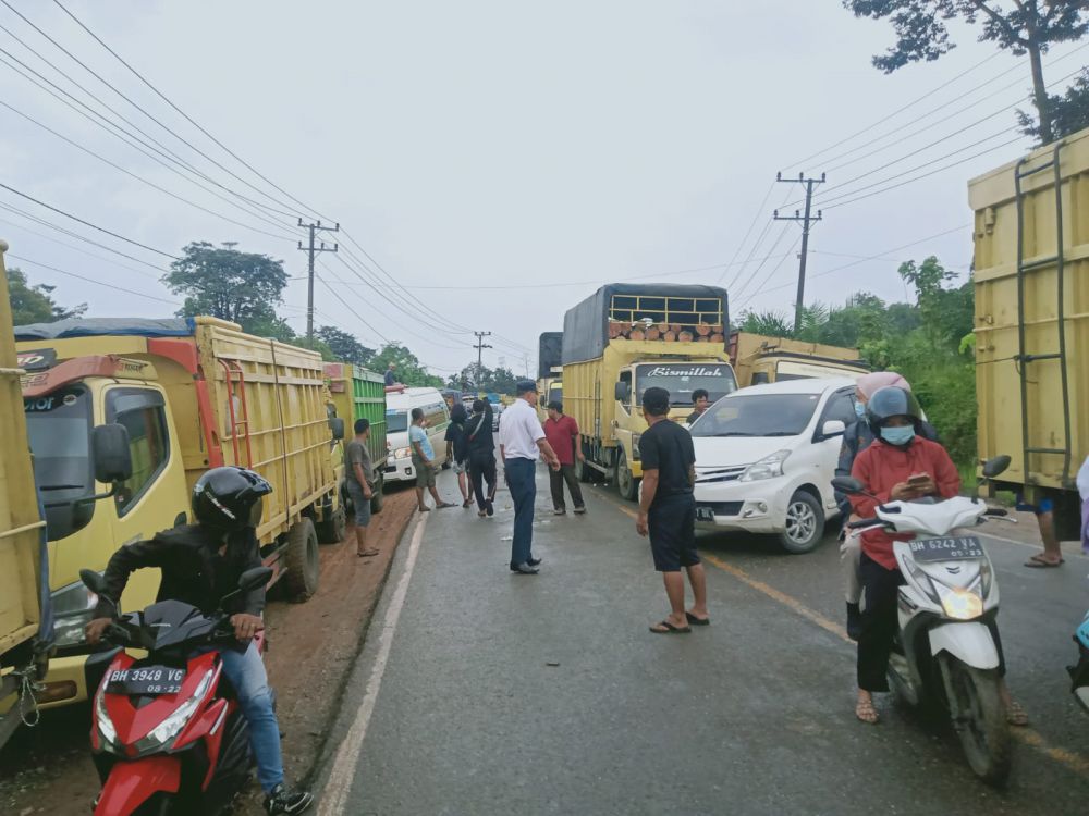 JAMBIUPDATE.CO, BATANGHARI - Kemacetan panjang kembali terjadi di wilayah hukum Polres Batanghari tepatnya di Jalan Lintas Muara Bulian - Tembesi atau sebaliknya. Penyebab kemacetan ini masih sama dikarenakan ada beberapa mobil truk yang mengalami kerusakan di bahu jalan. Senin (31/10).