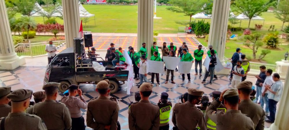 Para Ojol hanya ditemui olen Staf Ahli Gubernur bidang ekonomi dan pembangunan Ariansyah.