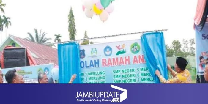 JAMBIUPDATE.CO, KUALATUNGKAL- Sebanyak 8 (Delapan) Sekolah Menengah Pertama atau SMP Negeri di 3 (Tiga) Kecamatan yakni Kecamatan Merlung, Muara Papalik dan Kecamatan Renah Mendaluh, mendeklarasikan Sekolah Ramah Anak atau SRA, di Halaman SMP Negeri 1 (Satu) Merlung.