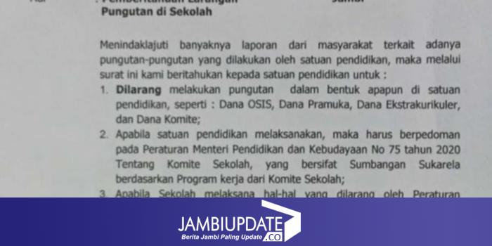 JAMBIUPDATE.CO, JAMBI - Dinas Pendidikan Provinsi Jambi mengeluarkan surat larangan pungutan liar dalam jenis apapun di
